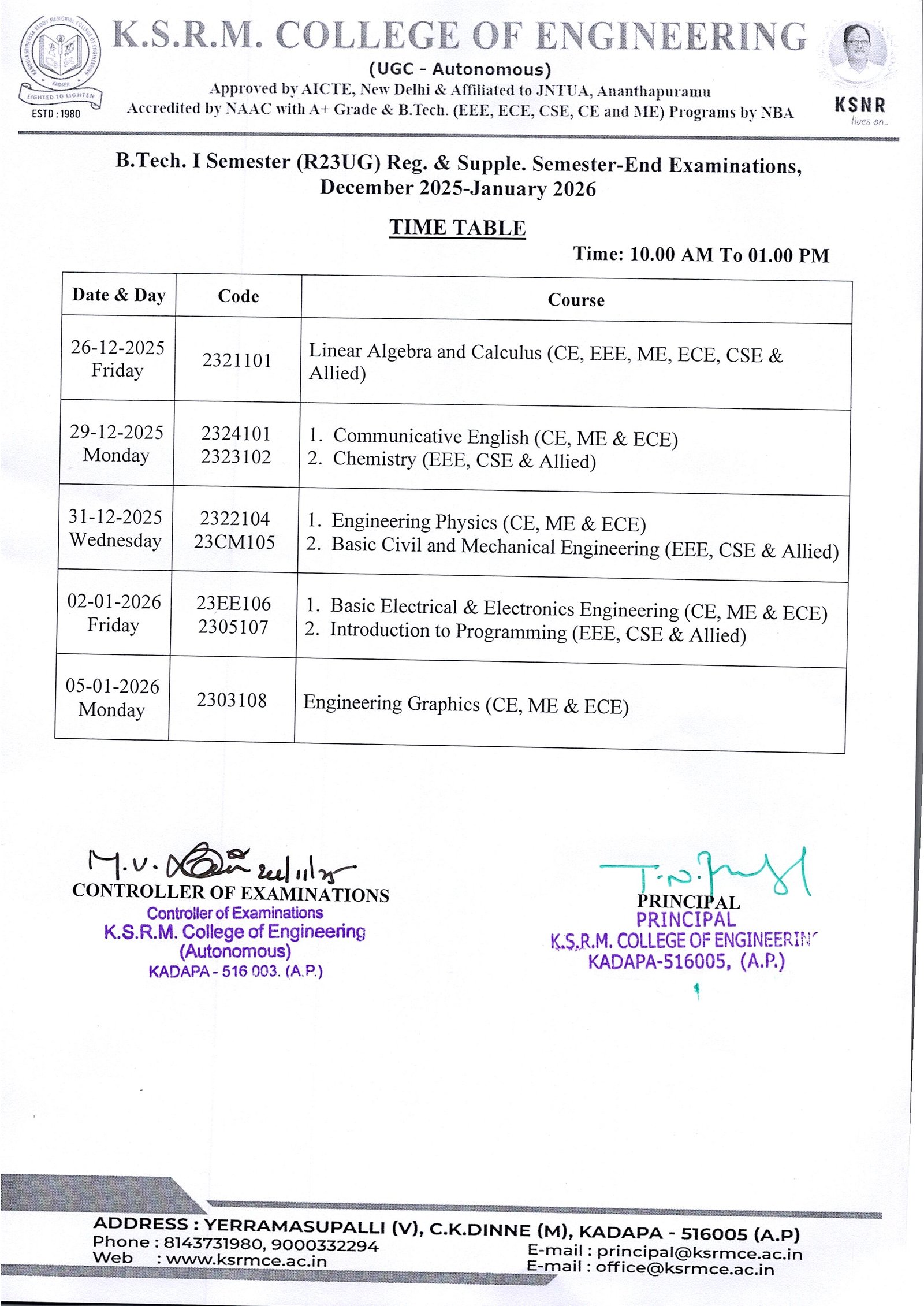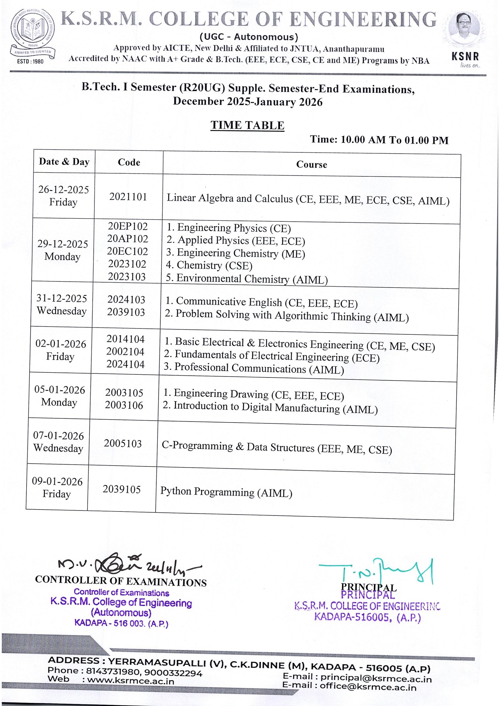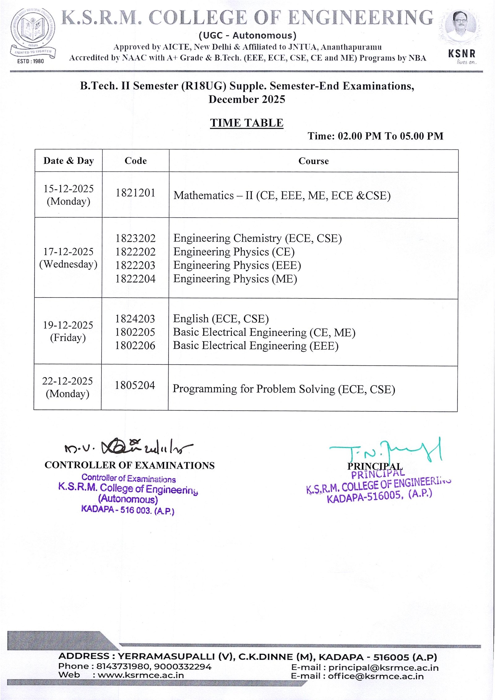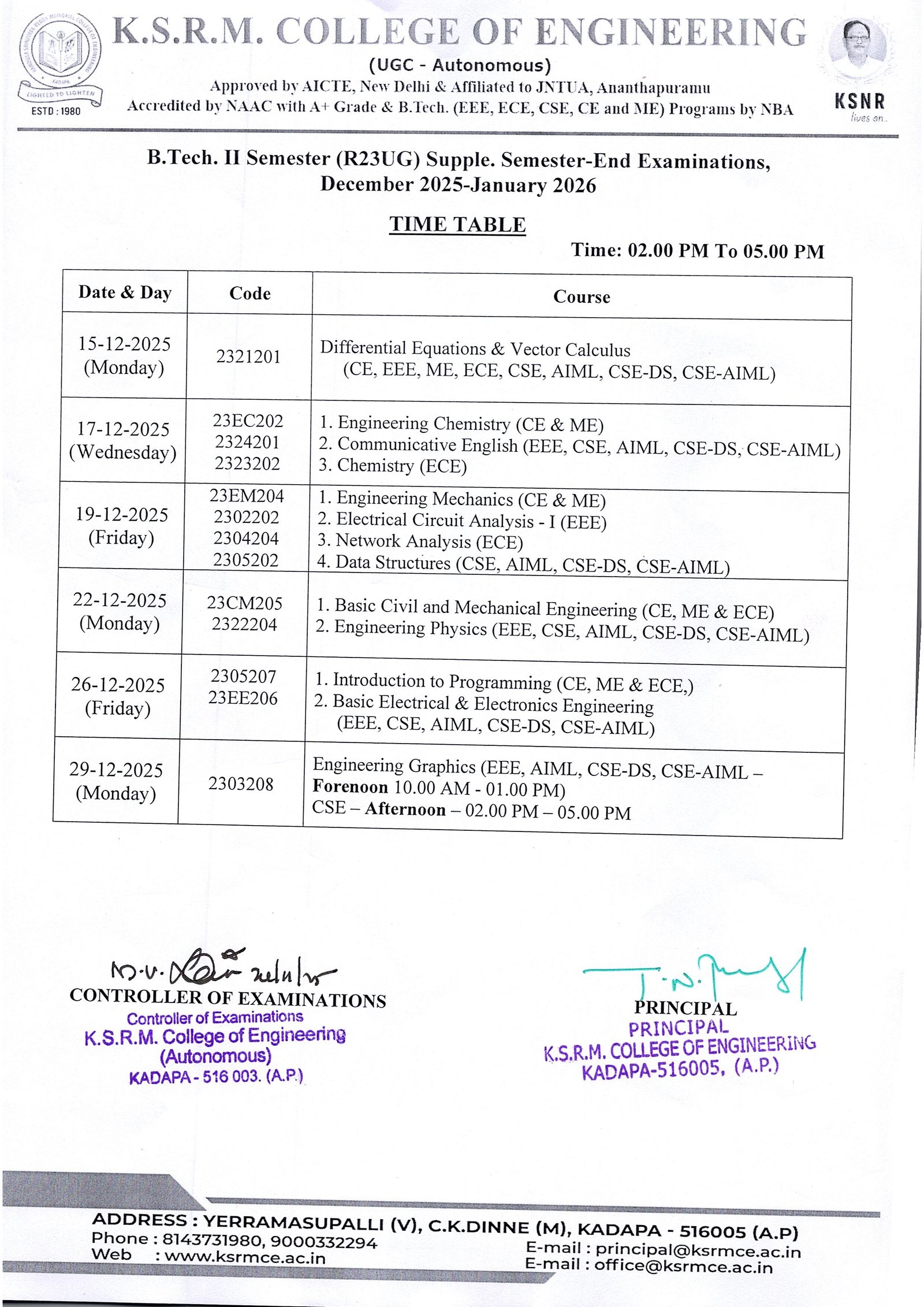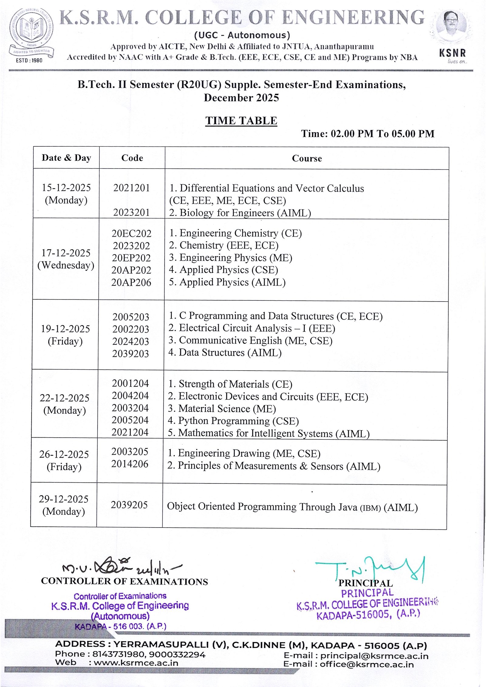 Controller of Exams