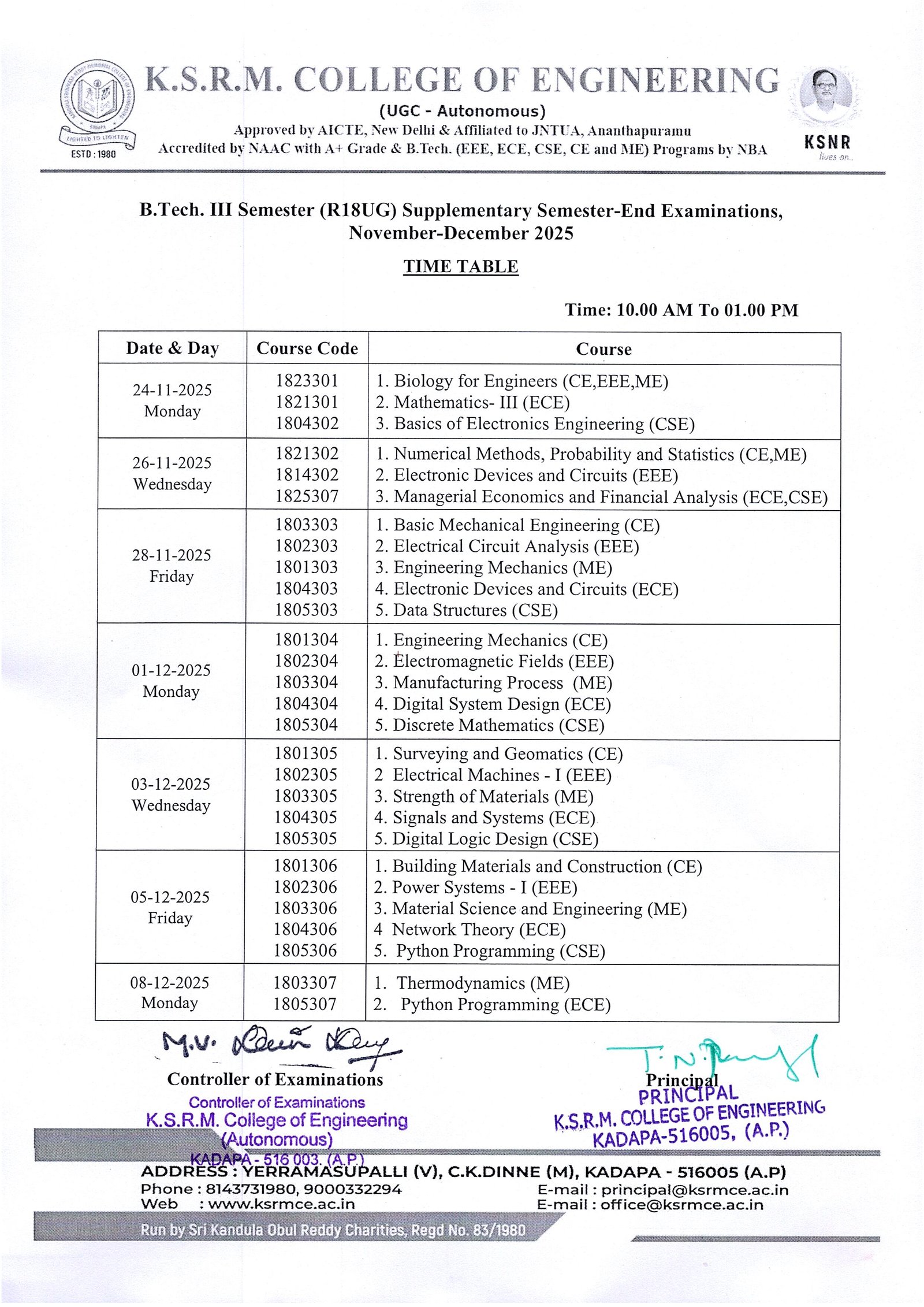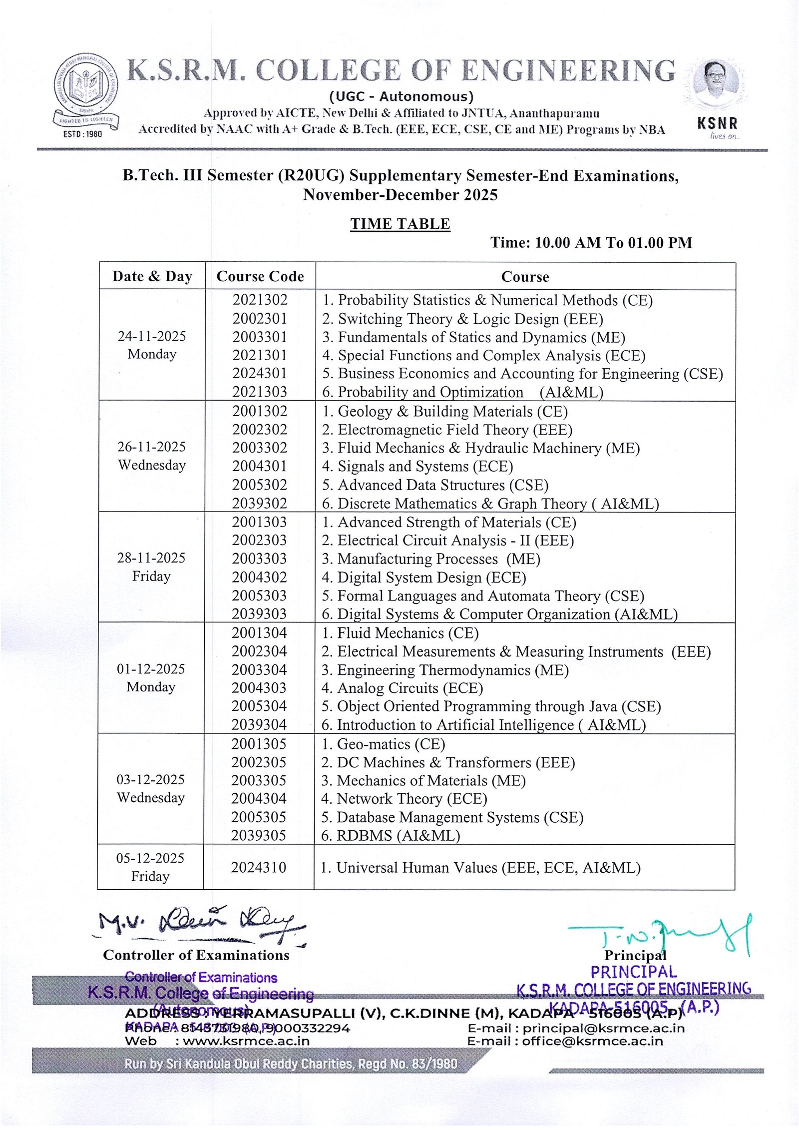 Time Table III Sem R20 Supple. Nov-Dec-25