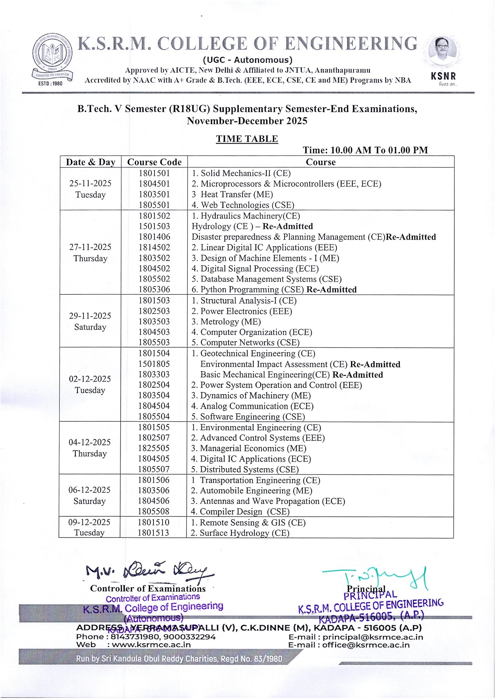 Time Table V Sem R20 Supple. Nov-Dec-25
