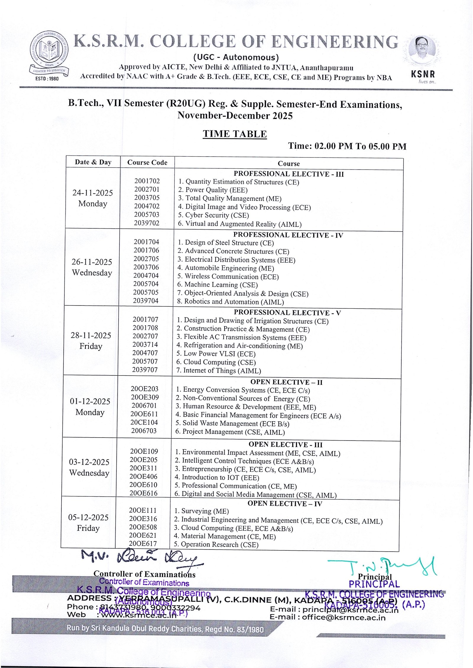 Time Table-VII Sem (R20UG) Reg. & Supple Nov-Dec-25