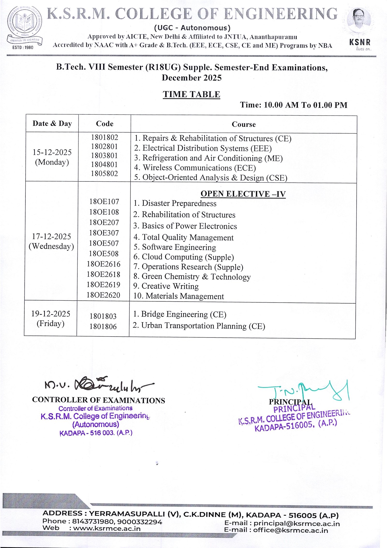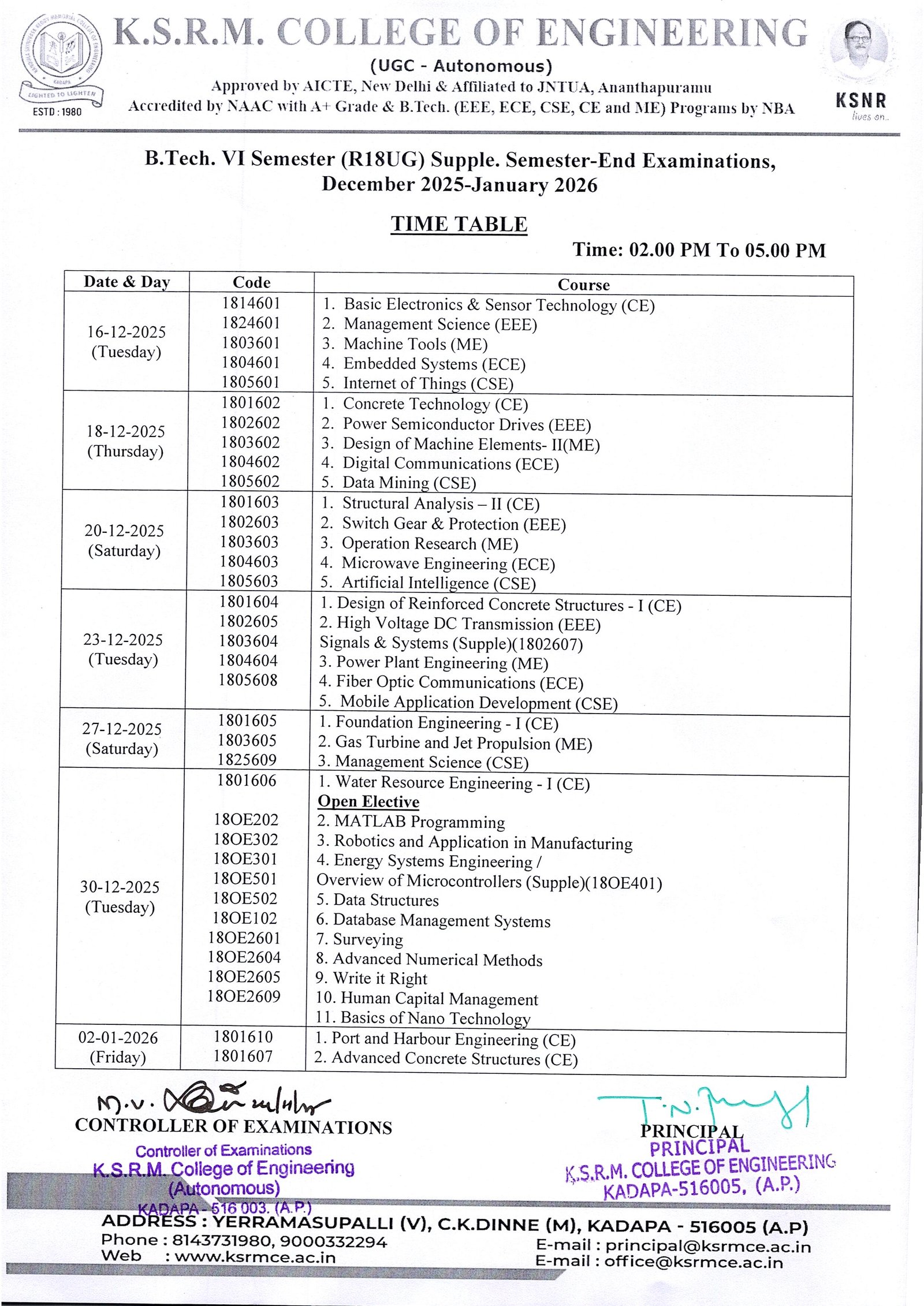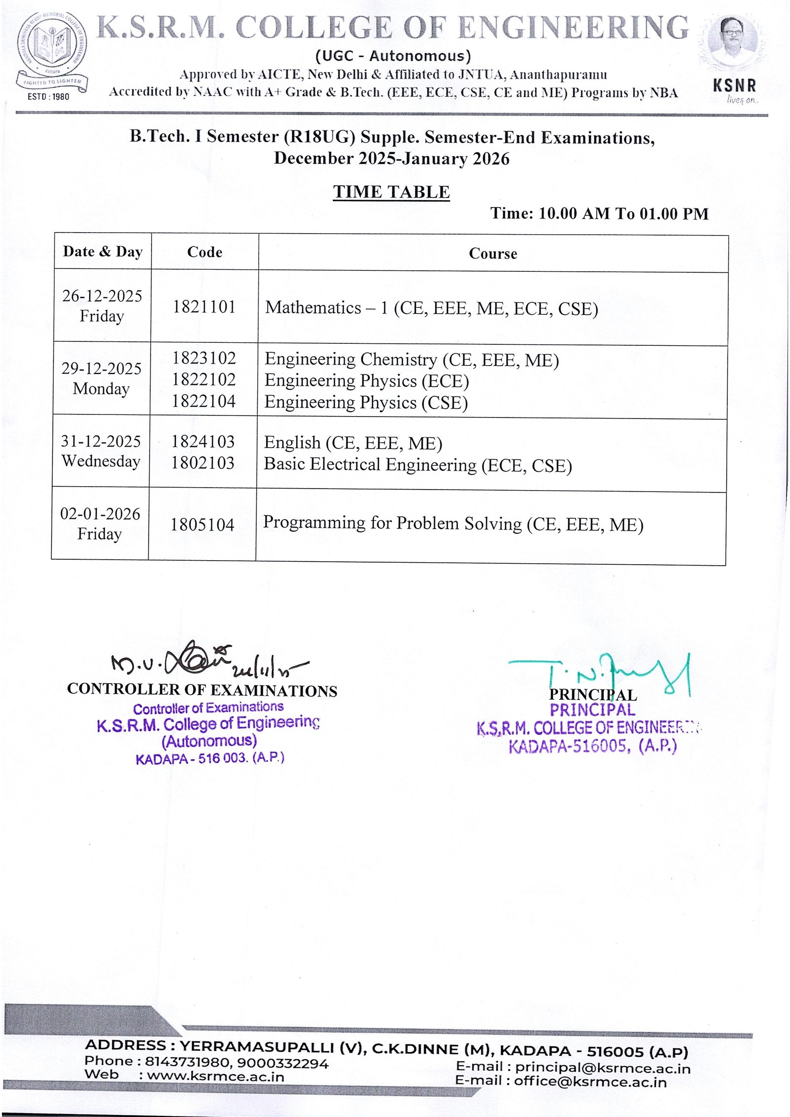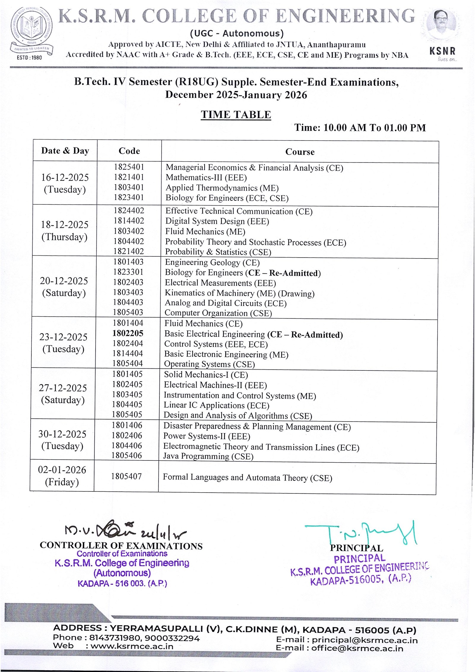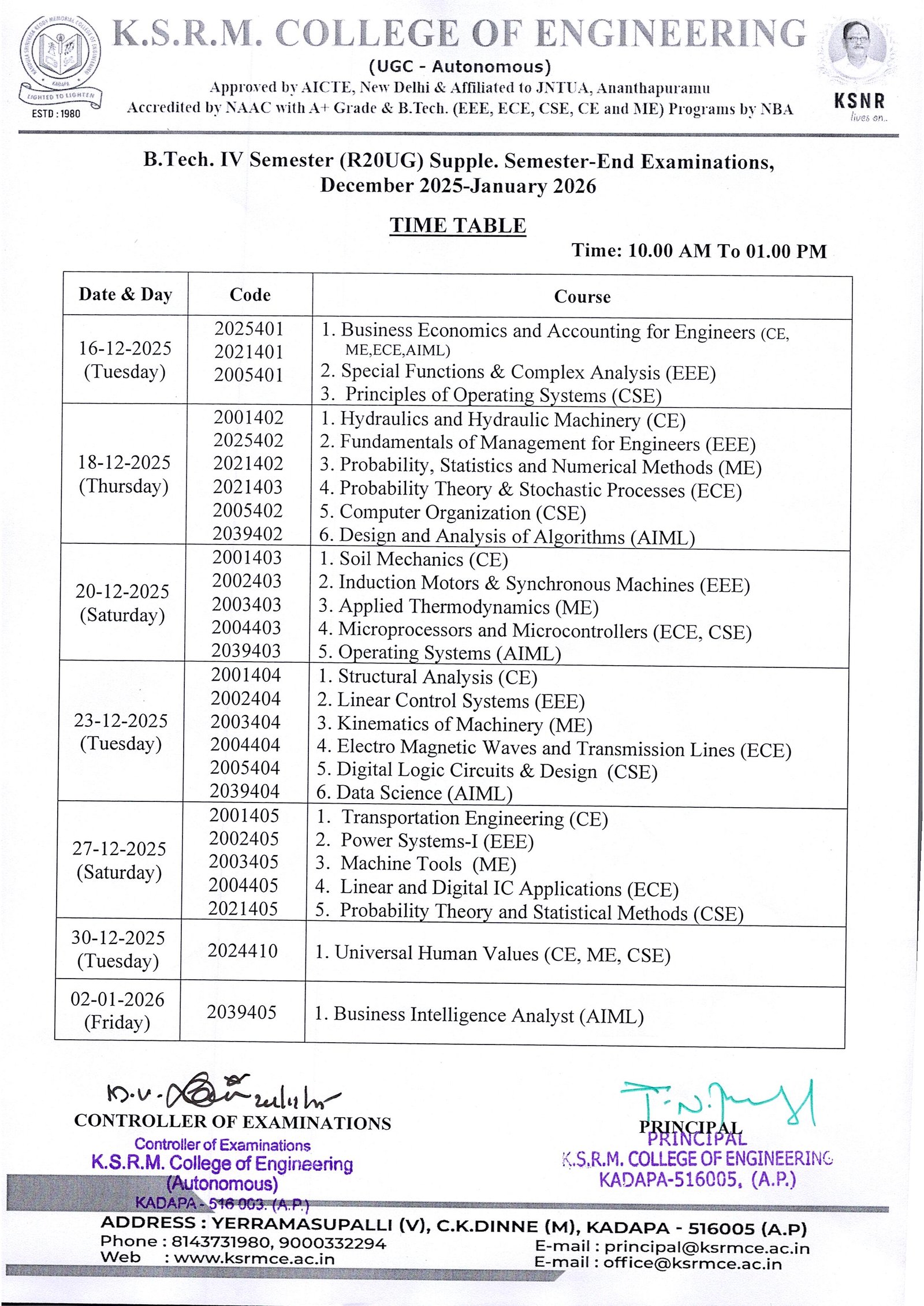 Controller of Exams