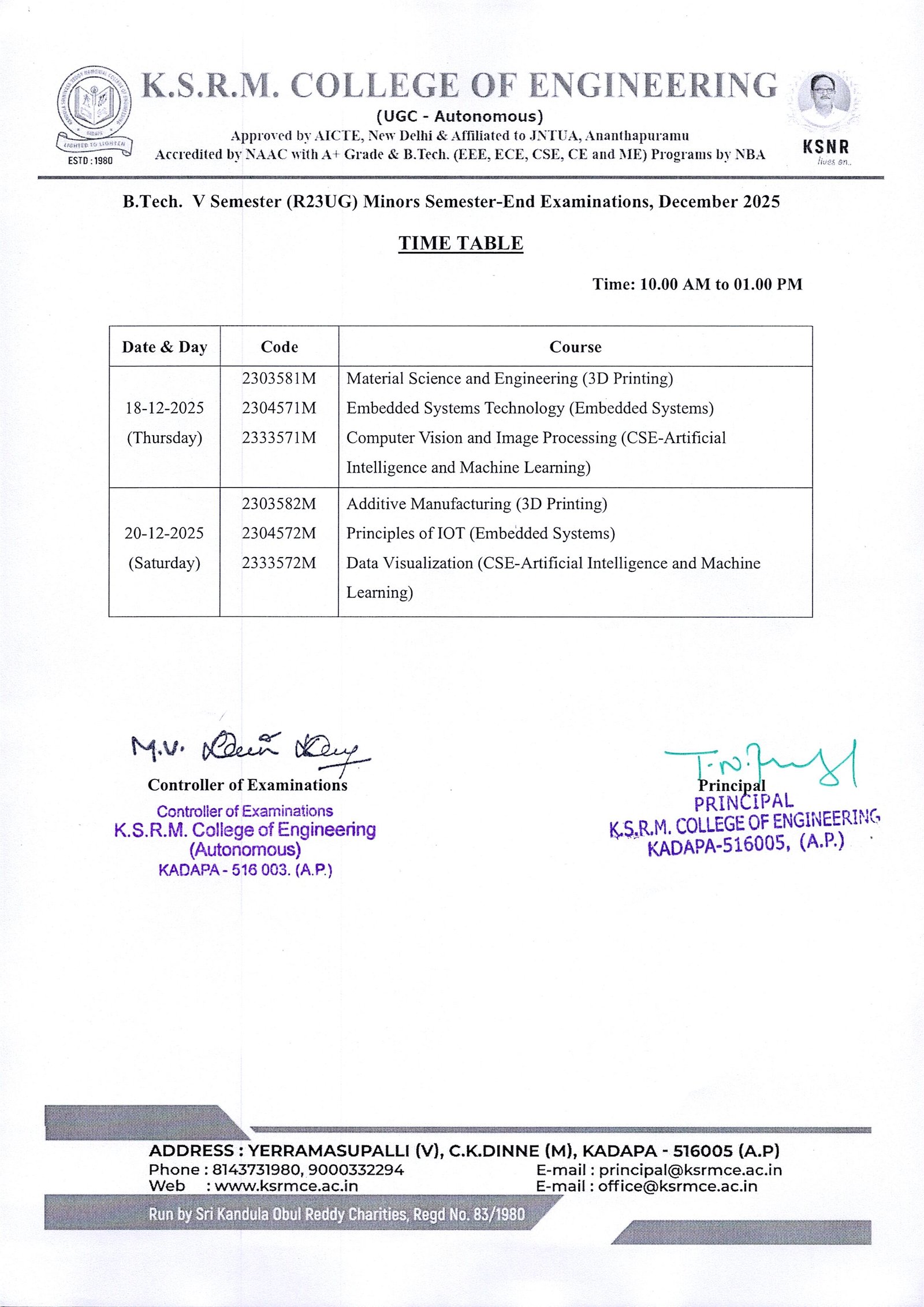 Minor Time Tables - V Sem End Exams, Dec-25