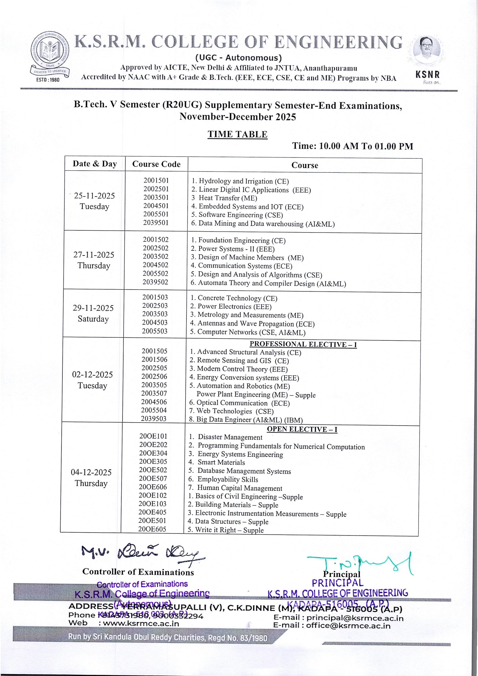 Time Table V Sem R20 Supple. Nov-Dec-25