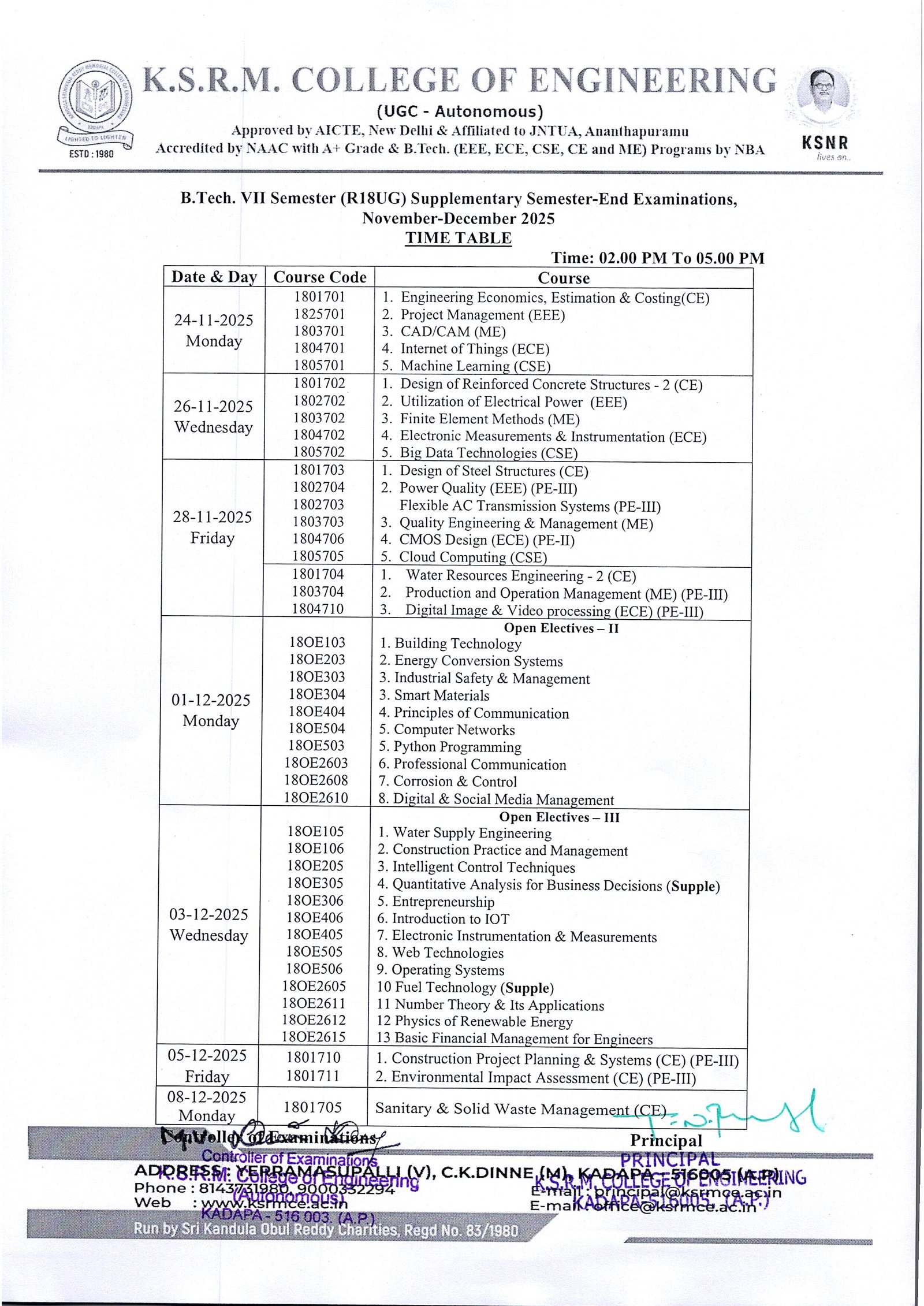 Time Table VII Sem R18 Supple. Nov-Dec-25