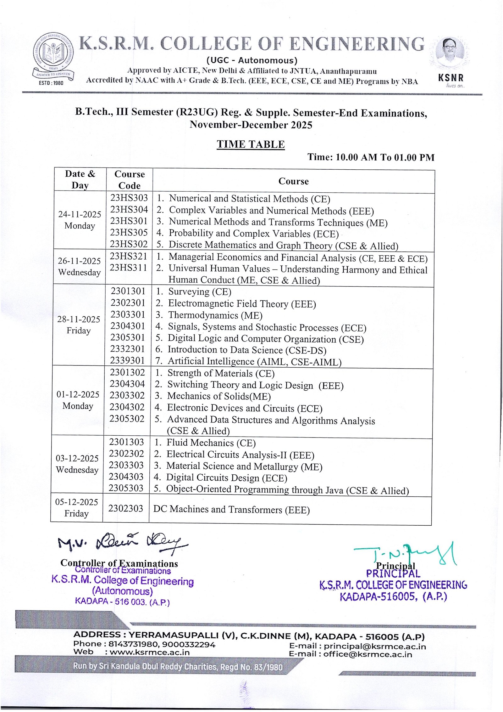 Time Table-III Sem (R23UG) Reg. & Supple Nov-Dec-25