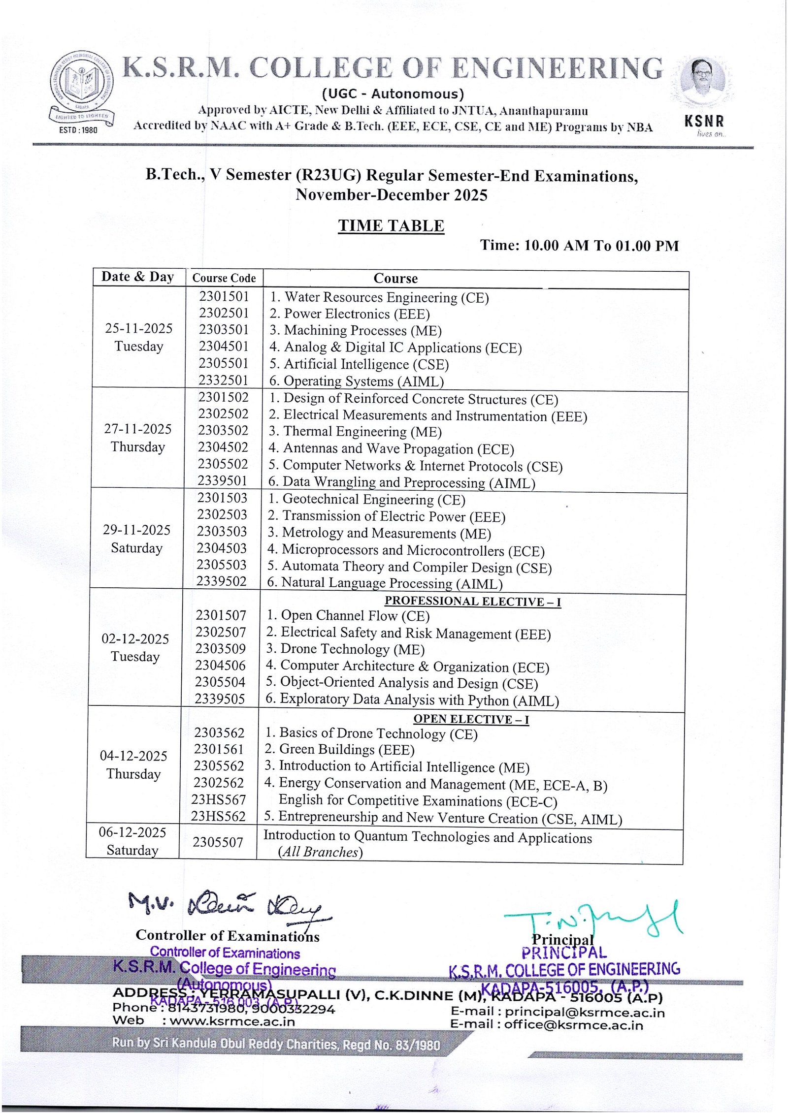 Time Table-V Sem (R23UG) Reg. Nov-Dec-25